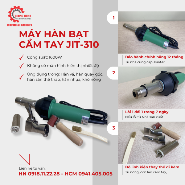Máy hàn bạt cầm tay JIT-310 áp dụng thiết kế cách điện cấp II, Tay cầm được làm từ chất liệu có độ bền cao, cách nhiệt cách điện tốt. với thiết kế nhỏ gọn, thuận tiện để cầm. Thiết kế điều khiển nhiệt độ cao hai giai đoạn để đảm bảo an toàn kiểm soát nhiệt độ, nhiệt độ được điều chỉnh liên tục, dao động điện áp và thiết kế ổn định điện áp để đảm bảo sử dụng điện an toàn. Lõi sưởi ấm được làm bằng gốm chịu nhiệt độ cao và dây điện trở nhập khẩu, độ bền cao